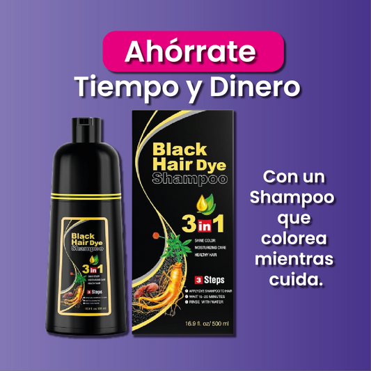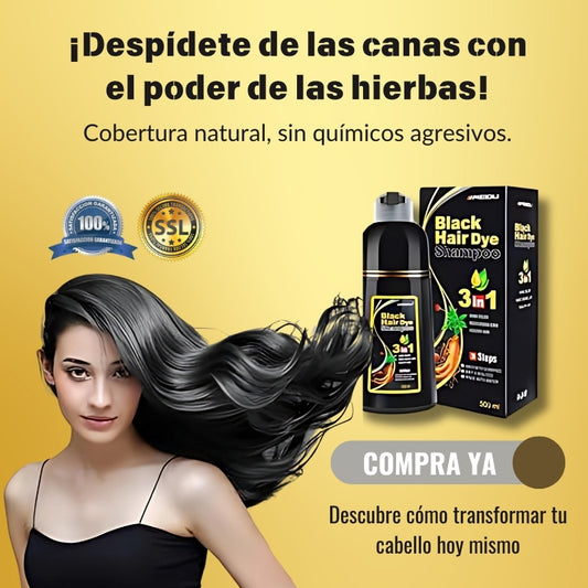 Shampoo Black Hair Dye 3 en 1- Shampoo, Condicionador y Tratamento Capilar